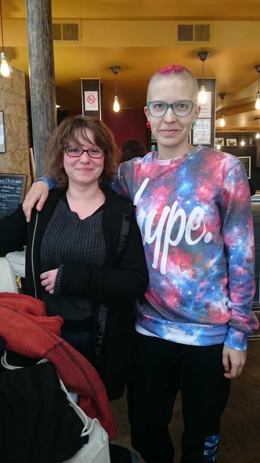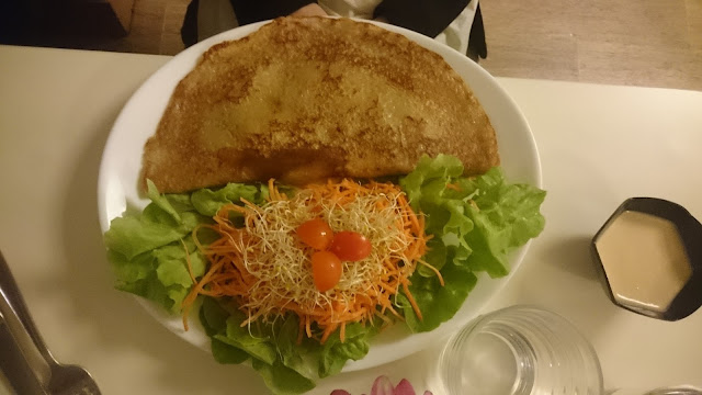 Porrasliikunnan jälkeen menimme syömään Brasserie Lolaan, vegaaniseen ravintolaan. Se sijaitsee Eiffel-tornista ihan kivenheiton päässä. Tilasin kebapin (annokseen kuulu ranskalaiset ja salaatti), Suvi soija-juusto-purilaisen. Molemmat oltiin tyytyväisiä. Kadulta ikkunan läpi minut bongasi lounastauolleen rientävä Leslie, johon tutustuin vuosi sitten Chilessä eräällä laguunireissulla. Tuolloin hän oli juuri muuttanut takaisin Ranskaan Belgian vuosien jälkeen. Viime kesänä ollessamme Lontoossa Leslie oli sattumoisin työjaksolla kaupungissa ja näki Facebook-päivitykseni. Lontoossa hän tapasi Suvinkin ja ehdotti meille Ranskaan tuloa. Siitä se kipinä varmaan Suviin tarttui.. Tällä kertaa meidän ei pitänyt tavata, koska Leslie oli menossa Belgiaan, mutta kohtalo johdatti meidät taas yhteen ennen kuin hän kerkesi livahtaa kaupungista. Creepy..