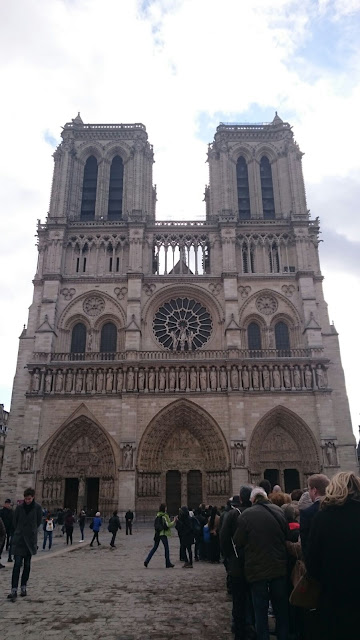 Menimme Notre Damen "kansainväliseen messuun". Emme olleetkaan ainoat sinne haluavat ja jonotimme puolisen tuntia. Messussa ei ollut tietääkseni mitään muuta kansainvälistä kuin ihmiset siellä.. Muuten kaikki oli ranskaksi. Tärkeintä oli tunnistaa saarnasta sana résurrection.. (ylösnousemus) Ehtoollisleivälläkin kävimme ja en ole varma mitä papille täytyy hänen kysymykseensä vastata, mutta sain leivän sanomalla "amen".