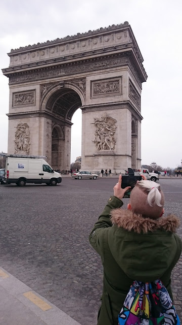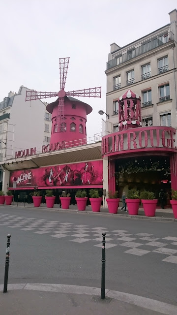 Metrolla jatkoimme matkaamme Franklin D. Rooseveltille, josta kävelimme Champs-Élyséesiä pitkin Riemukaarelle. Sieltä hyppäsimme metroon aina Moulin Rougelle asti, jonka edessä vietimme vain kuvaamiseen vaadittavat pari minuuttia. Olin etukäteen netistä tarkistanut kannattaisiko meidän mennä katsomaan sinne jotakin esitystä, mutta hinnat alkoivat 100 eurosta ylöspäin eikä meillä ollut tarvittavia juhlavaatteita (pikkutakki jne) mukana.